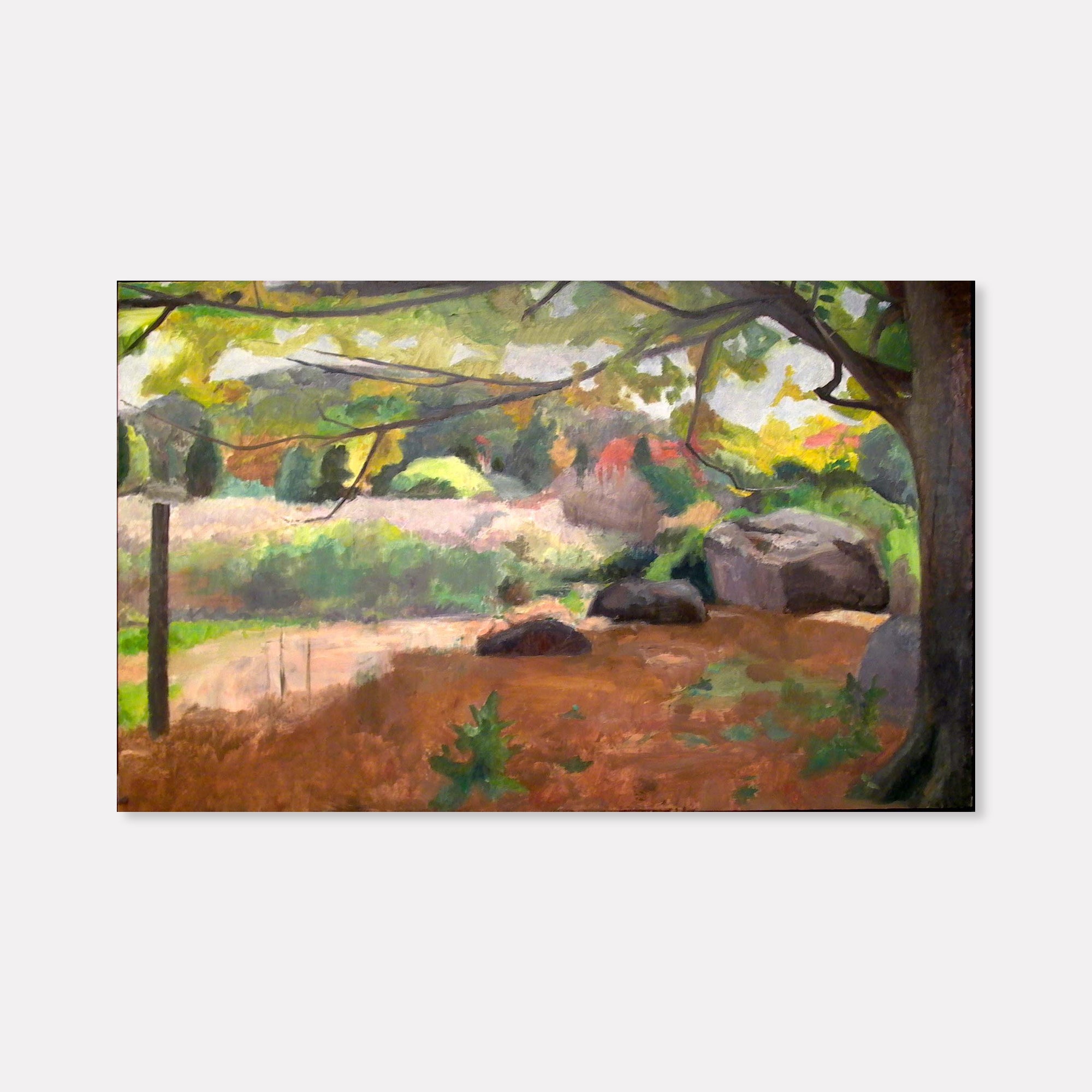 My work is closely observed - generally on site, and as a tonal painter I am concerned with color-values, a combination of how warm for how cool and how light for how dark that is registered in every mark that I make. These marks or spots are mixed on my palette - in my station point and abstracted from nature and applied to the canvas one next to the other which comprise the basic "building blocks" that read as both form and space. The creative process for me is largely based upon my seeing - both the canvas I'm working on and the subject I am taking up.